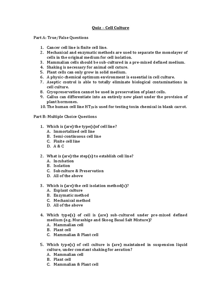 Animal Cell Culture Mcq - Multiple Choice Questions On Plant Biotechnology : Cell culture is widely used for the propagation of viruses as it is convenient, economic, easy to handle compared to other animals.