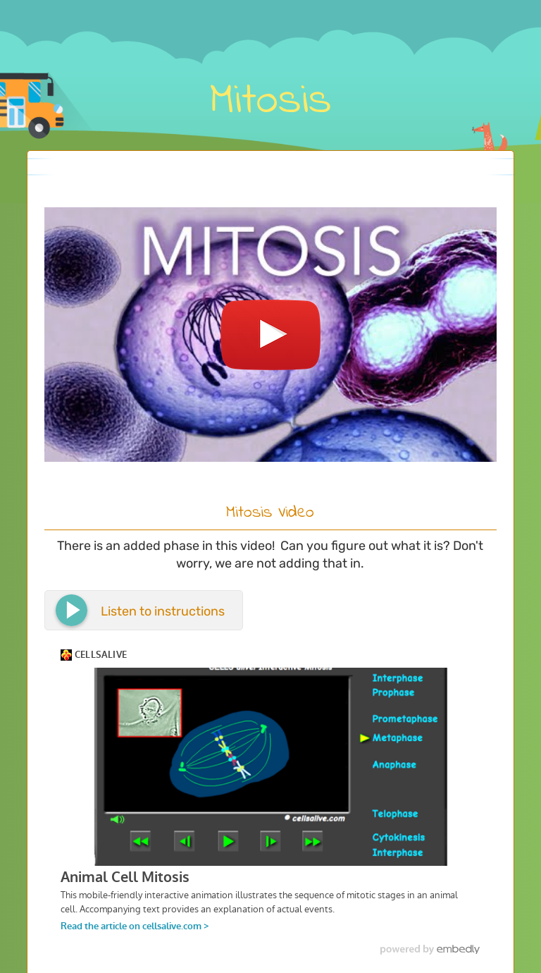 An interactive animation interactive animation showing the stages of animal cell mitosis.